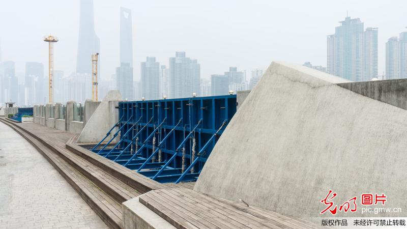 “抗洪神器”現(xiàn)身外灘 專家稱安全過(guò)關(guān)暫不擴(kuò)建(王岡攝/光明圖片)