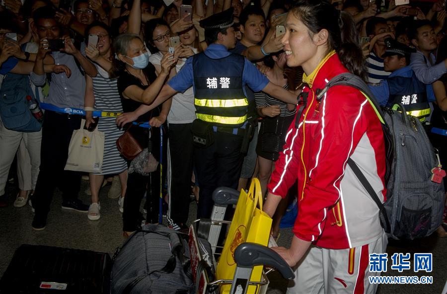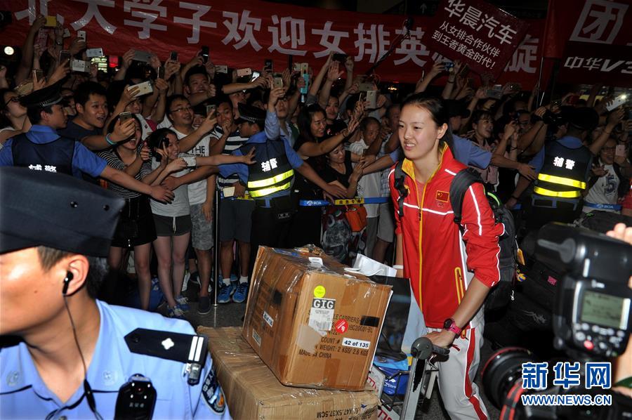 8月23日,中國女排隊員徐云麗抵達北京首都國際機場。當晚,在里約奧運會獲得金牌的中國女排回國。 新華社記者陳曉偉攝