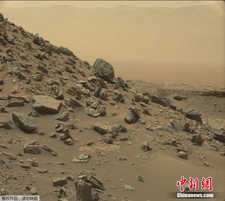 根據(jù)無人探測器“好奇號”在火星“莫瑞孤峰群(Murray Buttes)拍攝的新影像,除了遠(yuǎn)方的群山,當(dāng)?shù)剡€有丘陵、臺地,及巖壁,地貌與美國西南部的沙漠有些相似。