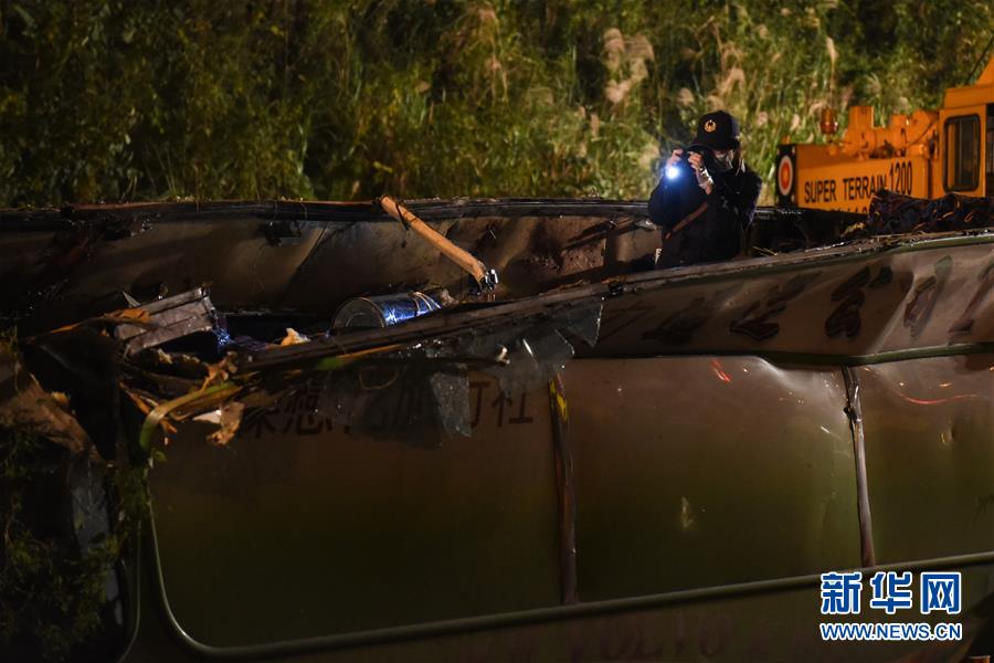 2月14日,工作人員在事故車輛內(nèi)取證。據(jù)臺灣消防部門2月14日零時許發(fā)布的消息,13日晚發(fā)生的翻車事故已造成32人死亡,受傷的12人已全數(shù)送醫(yī)。新華社記者從臺灣公路警察部門獲悉,游覽車上沒有大陸游客。臺北市消防局通報,13日21時6分許,在臺灣公路主干道5號南港系統(tǒng)交流道接3號南下路段,臺北市蝶戀花公司一輛游覽車翻覆于引道邊坡,車內(nèi)共44人(游客42人,導游、司機各1人),其中死亡32人(30人未送醫(yī),2人送醫(yī)后不治),12人送醫(yī)持續(xù)治療中。新華社記者 歐東衢 攝