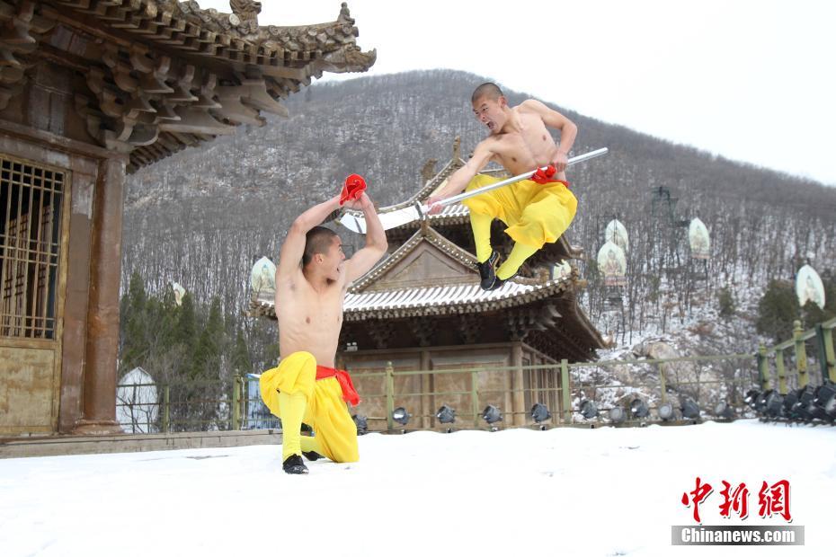2月22日,河南出現(xiàn)暴雪天氣,氣溫驟降,少林寺所在地登封嵩山白雪茫茫,銀裝素裹,武僧們赤膊上身在冰天雪地里苦練少林功夫。盡管寒風刺骨,少林武僧們依舊照常練功,只見他們赤膊上陣,不懼寒冷,在雪窩里扎馬步、練少林棍、刀槍對戰(zhàn)。他們中間最小的只有6歲。 中新社記者 王中舉 攝