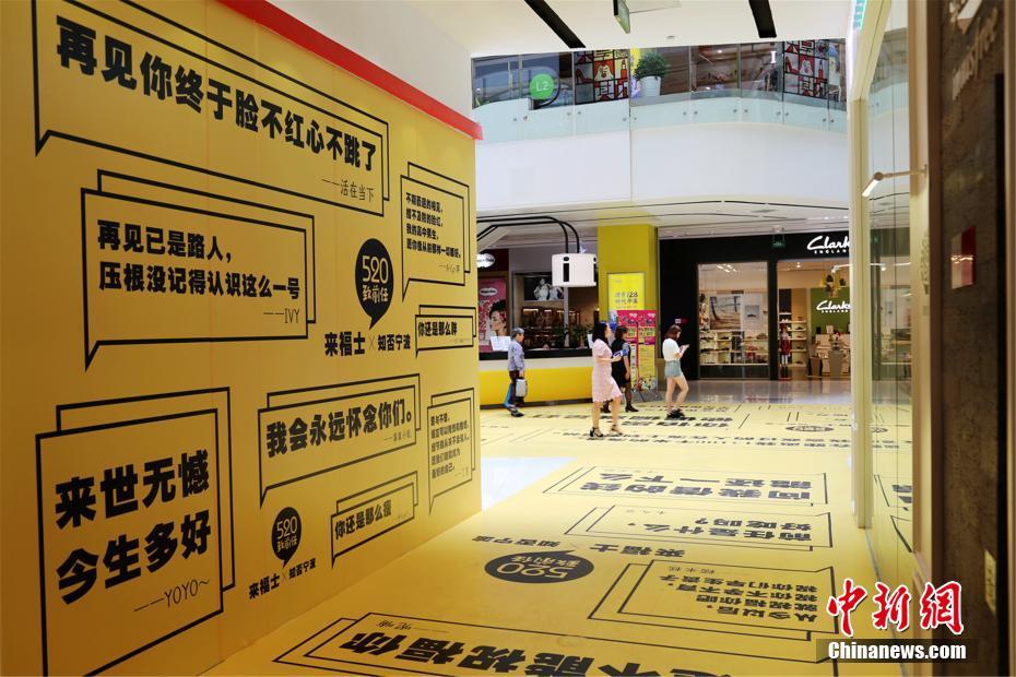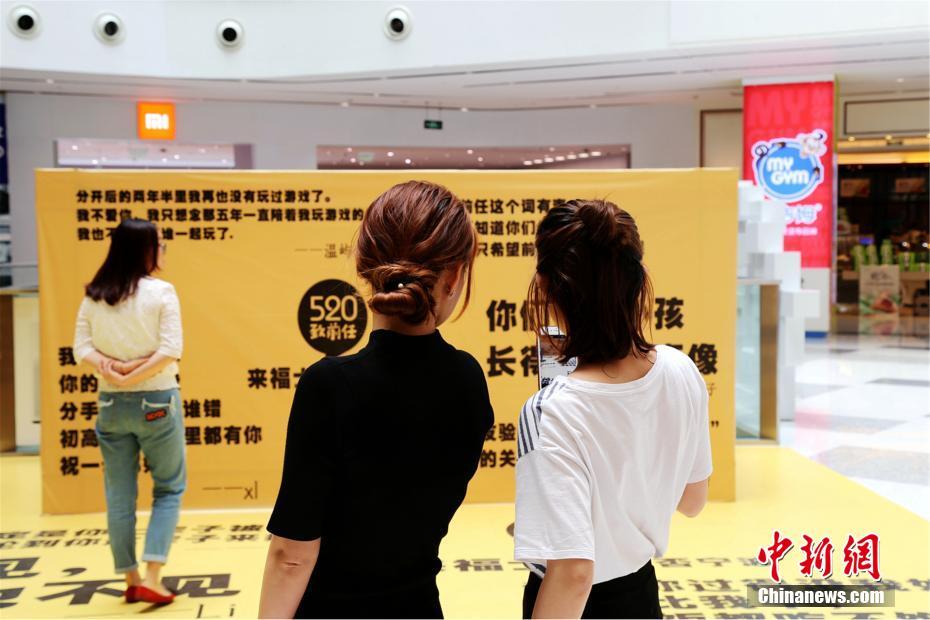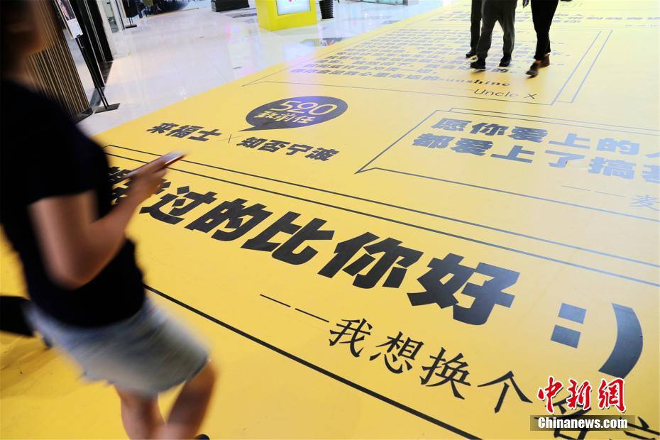 5月18日,在浙江寧波某商場(chǎng)內(nèi),近百條“致前任”留言貼滿了墻壁和地面,引發(fā)不少市民駐留圍觀。據(jù)工作人員介紹,這些句子來(lái)自網(wǎng)絡(luò)征集,最終篩選了99名網(wǎng)友留言,希望在“520”這一網(wǎng)絡(luò)情人節(jié)中,引發(fā)人們對(duì)愛的共鳴。尤勤勇 攝