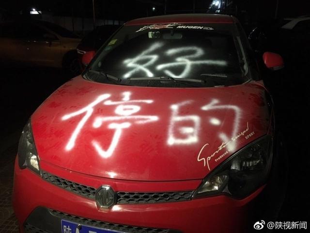 男子到西安方新路吃飯,因?yàn)闆](méi)車位就把車停在道沿中間,擔(dān)心自己的車會(huì)擋別人道,他專門留下了聯(lián)系方式。可是吃完晚飯后他回到車跟前卻看到自己的車被人噴了漆,寫了三個(gè)字“停的好”。