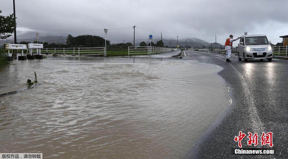 臺風(fēng)為九州島帶來嚴(yán)重災(zāi)情,熊本及長崎分別有6.2萬及6,400戶停電,九州島電力公司正在搶修。九州島新干線從博德站至鹿兒島中央站一度全線停駛,博德站至熊本站的南北雙向列車其后恢復(fù)正常服務(wù)。圖為九州島福岡縣,洪水淹沒道路。