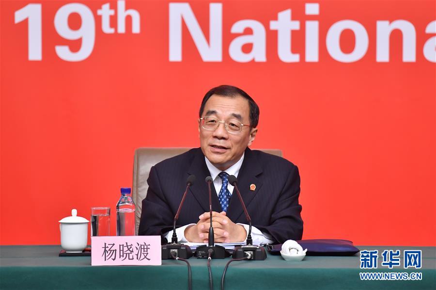 10月19日,中國共產(chǎn)黨第十九次全國代表大會新聞中心舉行記者招待會,請中共中央紀(jì)律檢查委員會副書記、監(jiān)察部部長、國家預(yù)防腐敗局局長楊曉渡,中共中央組織部副部長齊玉介紹加強黨建工作和全面從嚴(yán)治黨情況,并回答記者提問。這是楊曉渡在介紹情況。新華社記者 沈伯韓 攝