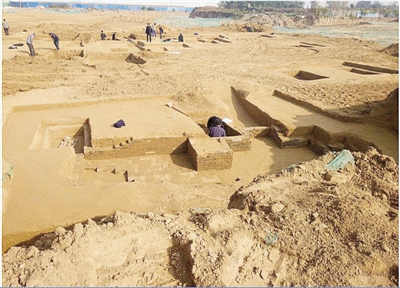 昨日上午,記者現(xiàn)場(chǎng)看到,大量考古人員正在大面積的考古發(fā)掘。據(jù)現(xiàn)場(chǎng)一位考古技術(shù)員介紹,這是繼去年常莊村發(fā)現(xiàn)古墓群后,又一古墓群的發(fā)掘,共有73座古墓,里邊已經(jīng)有少量隨葬品出土,初步斷定為東周至漢代時(shí)期古墓群。
