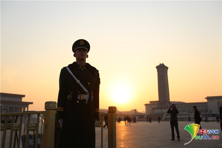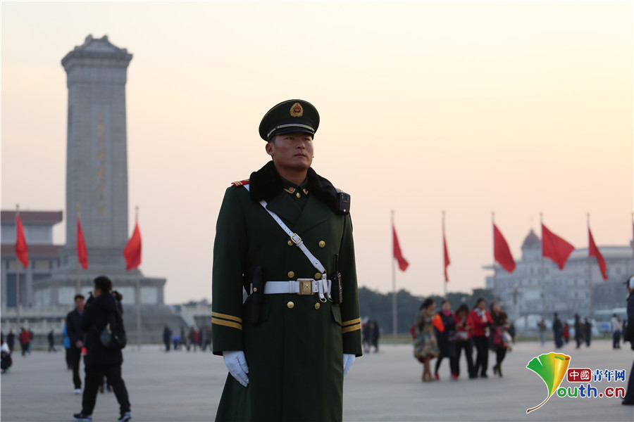 11月19日下午,武警官兵在天安門廣場執(zhí)勤。中國青年網(wǎng)通訊員 李超 攝