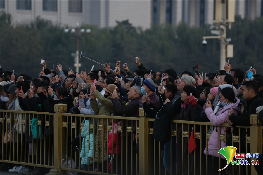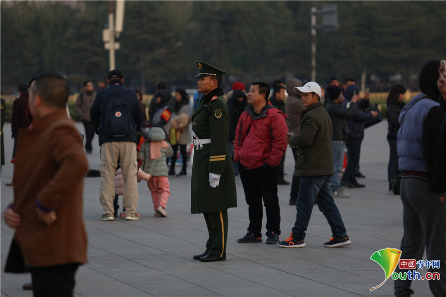 寒風中,觀看降旗儀式的游客們。中國青年網(wǎng)通訊員 李超 攝