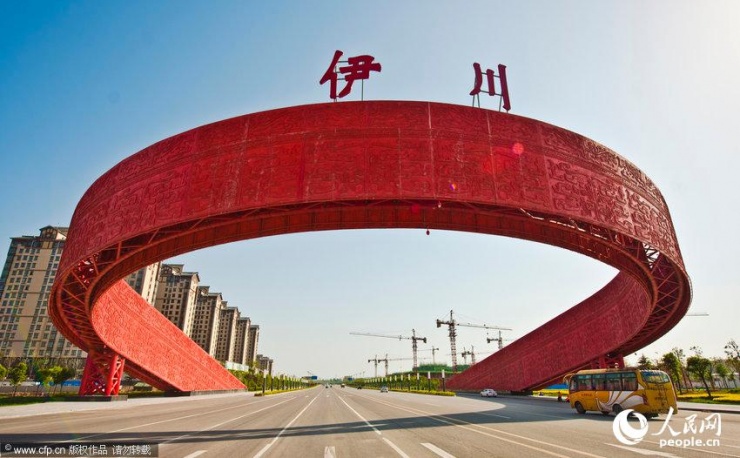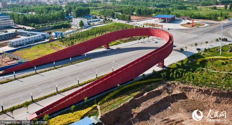 洛陽(yáng)市伊川縣洛伊快速通道伊川界的伊川北大門建成,設(shè)計(jì)雷人,既像是一條紅腰帶,又酷似一個(gè)圈套,遭到網(wǎng)友虐稱:進(jìn)出城要鉆“褲腰帶”。