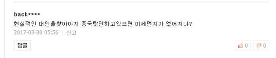 首爾市立大學(xué)環(huán)境工程教授Kim Shin-do表示:“政府一邊坐視不管,一邊將責(zé)任推諉給中國。”