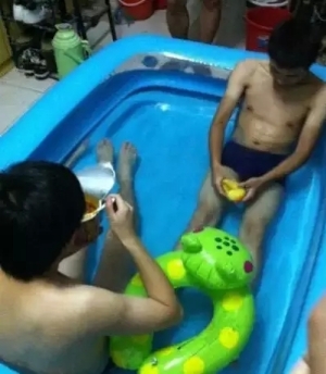 對(duì)于沒(méi)有空調(diào)的宿舍,夏天是最難熬的??磥?lái)為了避暑,童鞋們想盡了各種奇葩招數(shù)??!宿舍居然還有泳池!!很清涼啊?。∮心居校。?!