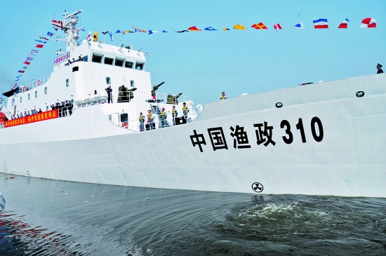 中國(guó)漁政310船總噸位2580噸,續(xù)航力6000海里,持航60個(gè)晝夜,可駛往國(guó)際無限航區(qū),最大航速可達(dá)每小時(shí)22海里。該船配備有現(xiàn)代化的設(shè)備,可搭載直升機(jī)。該漁政船首航隨即奔赴我國(guó)釣魚島海域開展?jié)O政巡航執(zhí)法管理工作;2012年2月至3月期間,該漁政船完成今年度首次南海巡航執(zhí)法任務(wù)。