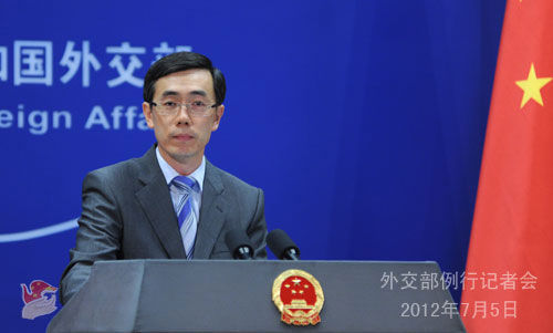 2012年7月5日,外交部發(fā)言人劉為民主持例行記者會(huì)。