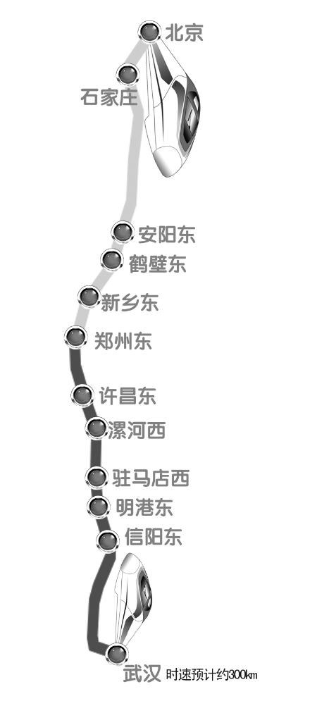 其中,石武高鐵河南段里程共計507公里。按照規(guī)劃,共計有九個站,分別為,安陽東站、鶴壁東站、新鄉(xiāng)東站、鄭州東站、許昌東站、漯河西站、駐馬店西站、明港東站、信陽東站等。
