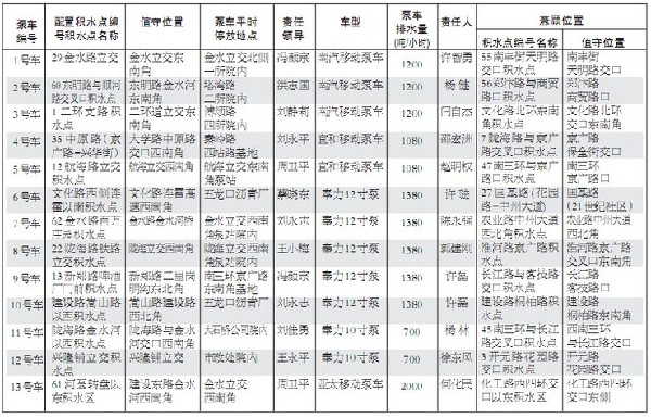 移動(dòng)泵車防汛區(qū)域分布一覽表