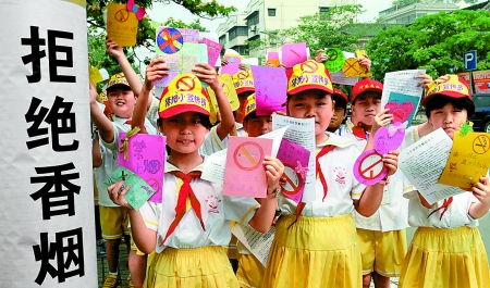 5月30日,許昌市古槐街小學(xué)的禁煙小宣傳員們,帶著親手制作的無煙日手抄報(bào)、禁煙勸導(dǎo)卡,來到廣場(chǎng)、公園、商場(chǎng)等公共場(chǎng)所,勸導(dǎo)市民拒絕煙草。