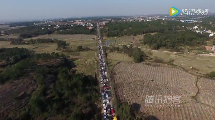 航拍農(nóng)村拜年車隊(duì)堵爆馬路