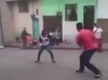 女漢子與男子當街拼刀肉搏