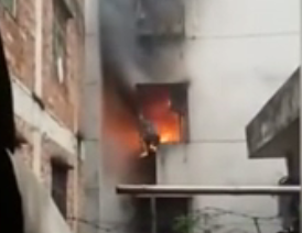 • 男子被困火海路人淡定拍攝