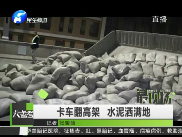 • 卡車偷上高架側(cè)翻 水泥撒一地