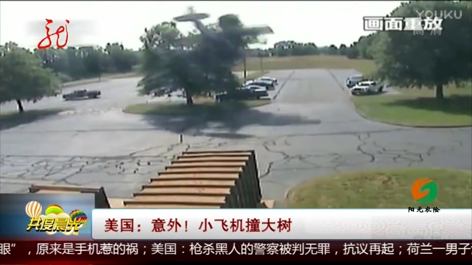 驚險(xiǎn)!小飛機(jī)降落撞大樹
