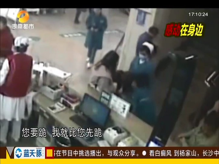 老人問(wèn)診下跪致謝 護(hù)士跪地托舉