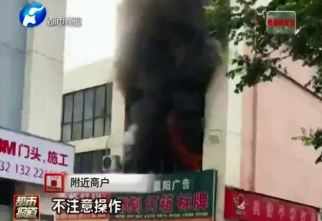 廣告商鋪起火 兩層燒成框架