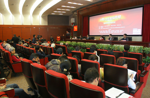 “尋訪百名共和國(guó)勞?!蔽繂?wèn)活動(dòng)啟動(dòng)儀式現(xiàn)場(chǎng)