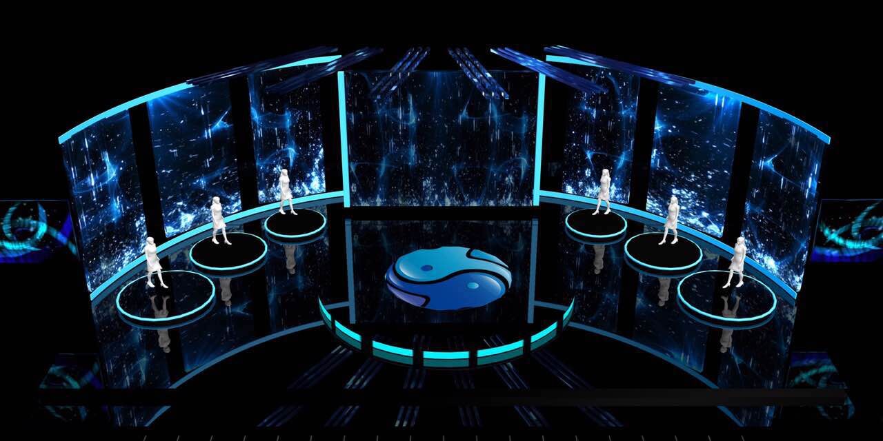 答:舞美設(shè)計(jì)是最直觀的表現(xiàn)。常規(guī)的舞美設(shè)計(jì)里,舞臺(tái)是有主持人區(qū)的,也就是舞臺(tái)中心;但這次舞臺(tái)沒有中心,大象融媒的六大媒介矩陣各居一方,分布在舞臺(tái)的六個(gè)維度上,體現(xiàn)融合之道!但僅是去除中心最直觀的表現(xiàn),不是唯一的表現(xiàn)。