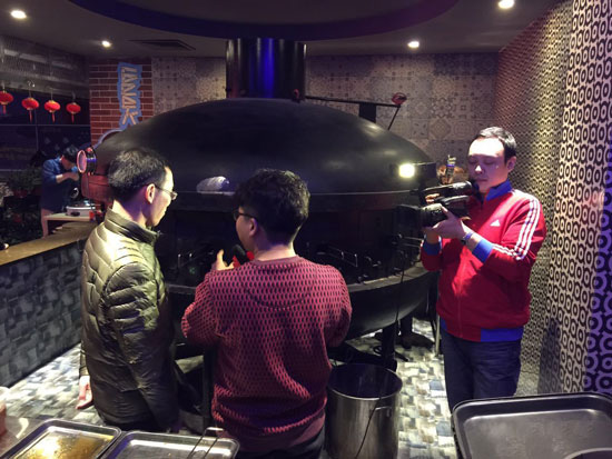 中間這個(gè)長(zhǎng)得像UFO的大黑家伙,就是極客烤魚(yú)用的烤爐,讓做美食多年的我們也驚訝不已。