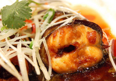 燒魚時有人喜歡把姜與魚一起下鍋,認(rèn)為這樣可去除魚腥。其實不然,過早放姜會使得魚體浸出蛋白質(zhì)阻礙生姜的去腥效果??梢韵劝阳~在鍋里煮一會兒,待蛋白質(zhì)凝固后再放姜;也可在爆鍋時烹入少量醋和料酒,起到去腥解膩增香的作用。如果還是覺著有腥味,出鍋前撒上點蒜末,效果非常好,特別是烹制長時間冰凍的魚。