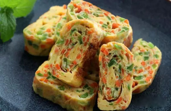 這款韓式蔬菜雞蛋卷,在蛋液中添加了胡蘿卜和甜椒,沖淡了雞蛋原有的味道,使得整款雞蛋卷口感變得清新且富有營(yíng)養(yǎng),尤其適合于不愛吃雞蛋,偏食的孩子以及消化不好的年長(zhǎng)者,是款各年齡段都喜愛的家常料理。