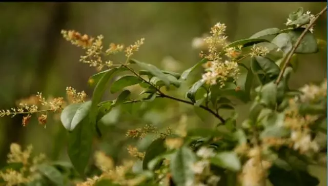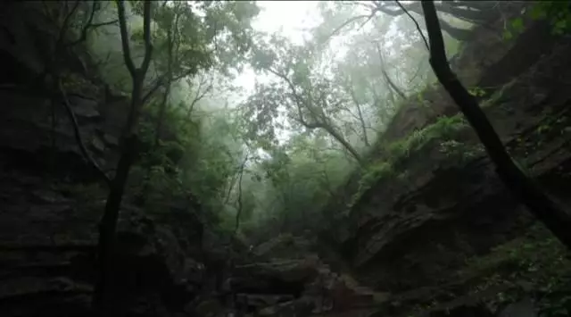 看到這棵樹(shù)了沒(méi)有,據(jù)說(shuō)這個(gè)葉子有個(gè)奇特的味道,是一股橘子味,在這山上還有很多珍貴野生的樹(shù)種,漫山遍野一股清香襲來(lái),再往前走就可以看到天井了,天井四面峭壁,犬牙交錯(cuò)高深莫測(cè)。