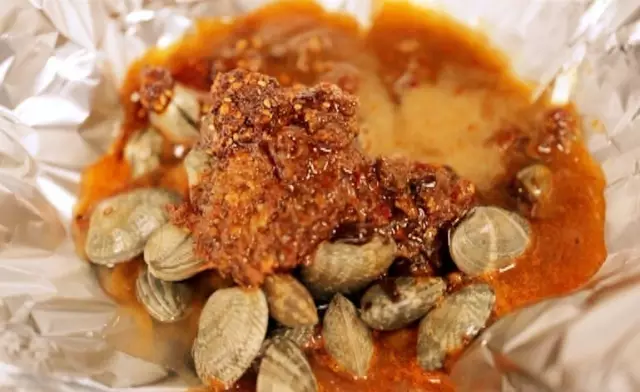 就像說(shuō)相聲講究捧哏與逗哏,冷鍋串串的好搭檔就是錫紙花甲啦,用錫紙折成碗狀放入花甲和調(diào)味料,在電磁爐上煮上五分鐘再放點(diǎn)粉絲,那香味足以讓人興奮起來(lái)了。