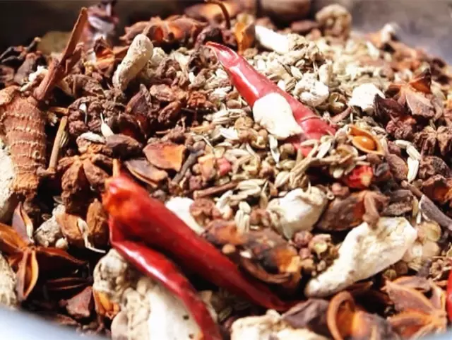 第一步就是清洗肉類(lèi),清洗的程度也影響鹵肉的口感,不過(guò)一天就要洗三四百斤的肉,這可是個(gè)不輕的體力活,直徑1.5米的大鍋中是老湯,眼前這鍋老湯已經(jīng)用26年了,散發(fā)著撲鼻的肉香味鹵香味,依次放入洗凈的肉塊和大料,除了常見(jiàn)的八角花椒良姜等,辣椒姜片的加入也增加了口感。