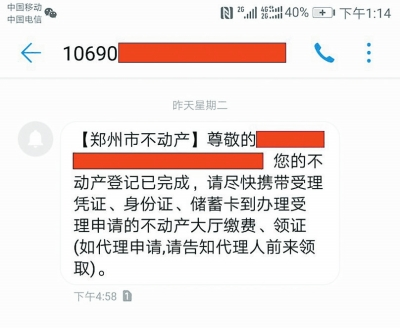 不動(dòng)產(chǎn)登記證書(shū)、證明啥時(shí)領(lǐng)?短信提醒已開(kāi)通