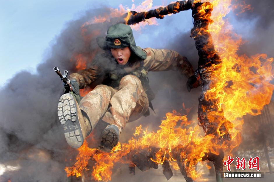 3月5日,黑龍江省軍區(qū)邊防某團(tuán)官兵正在進(jìn)行跨越火圈的實(shí)戰(zhàn)訓(xùn)練。該部結(jié)合未來(lái)邊境作戰(zhàn)特點(diǎn),設(shè)置模擬化戰(zhàn)場(chǎng)環(huán)境,營(yíng)造硝煙滾滾、槍林彈雨、炮聲隆隆的實(shí)戰(zhàn)氛圍,從難從嚴(yán)從實(shí)戰(zhàn)角度出發(fā),深化“仗怎么打、兵怎么練”的實(shí)戰(zhàn)練兵力度,著力提升部隊(duì)實(shí)戰(zhàn)條件下的作戰(zhàn)能力,錘煉官兵敢打硬拼的過(guò)硬戰(zhàn)斗作風(fēng)。中新社發(fā) 魏建順 攝