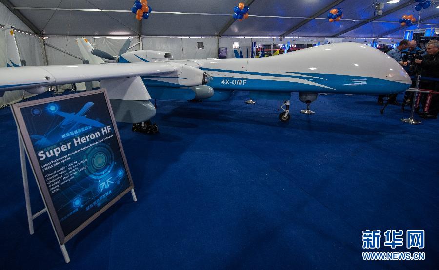 以色列航空工業(yè)協(xié)會在本次展會上首次展出“超級蒼鷺”HF無人機,該型無人機能在萬米以上高空完成約45小時飛行。 新華社記者李睿攝