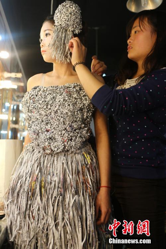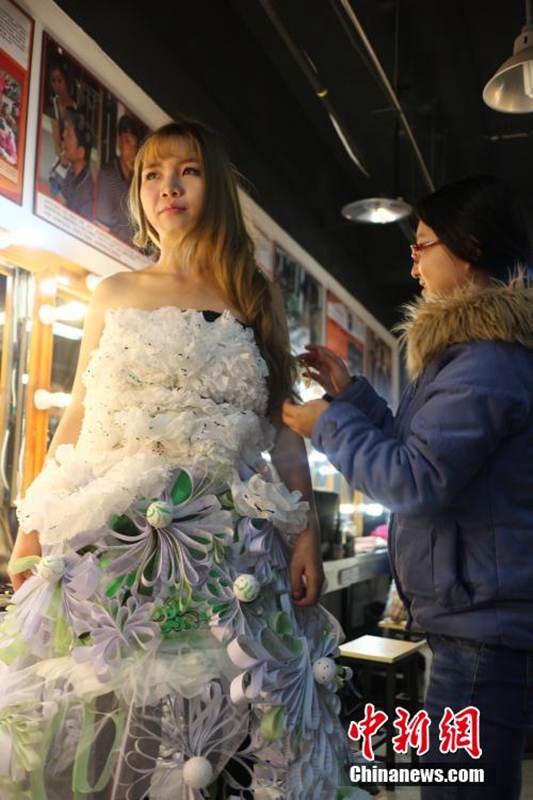 創(chuàng)意又環(huán)保 成都大學生用廢紙做婚紗