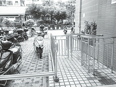 物業(yè)公司在電梯內(nèi)安裝了一個座椅,防止電動車上樓。