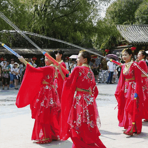 另外集聲、光、水、景為一體的水鼓表演和激情樂隊特色舞蹈,景區(qū)內(nèi)的水槍大戰(zhàn)和推鐵環(huán)、打陀螺、抖空竹、推獨輪車、挑柴擔等,都是夜游清明上河園不可或缺的體驗項目。